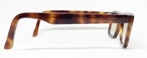 Lunettes de vue de soleil sur mesure pour homme. Monture épaisse et branches large. Couleur de l’acétate écaille demi blond. Verres dégradés brun.